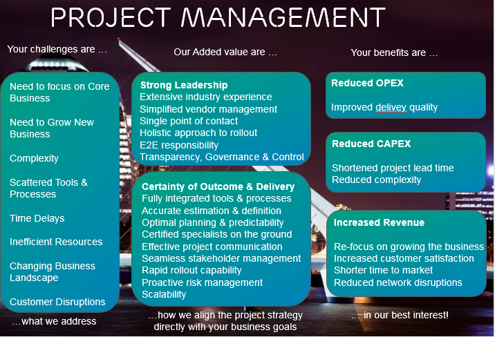 In order to support our customers to reach the expected benefits from their investments, we have skill on project & program management service securing all the key elements to achieve success. Success is achieved by carefully scoping and planning the project according to the customer’s business goals, by establishing a top of the class project organization with the right leadership, by applying the required delivery methodology and by strictly governing and controlling the projects.